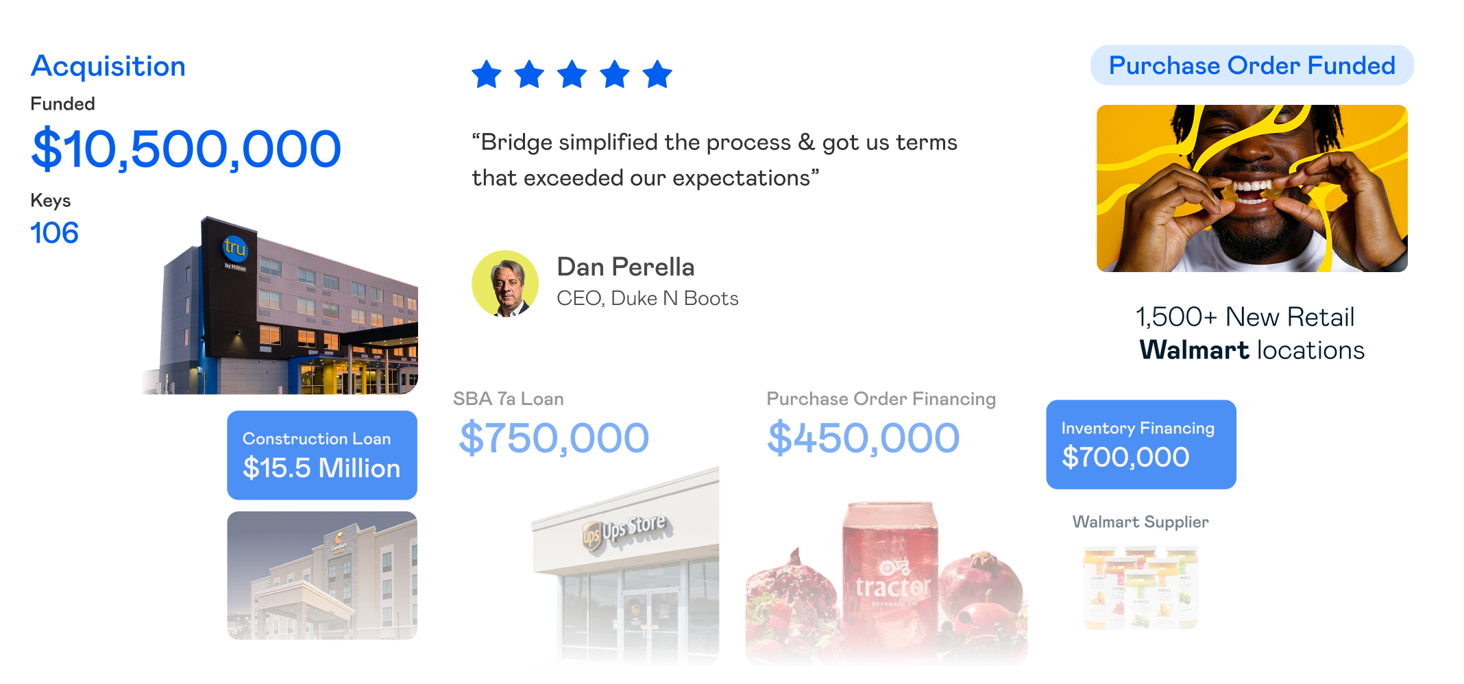 Bridge provides the same simple process for financing $50K to $100M.